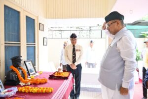 29 सितम्बर। सैनिक कल्याण मंत्री गणेश जोशी ने आज शहीद सम्मान यात्रा 2.0 के अंतर्गत अमर शहीद लेफ्टिनेंट प्रतीक आचार्य के नैशविला रोड डोभालवाला स्थित आवास पर पहुंचकर उनके परिजनों से भेंट की। इस दौरान मंत्री जोशी ने शहीद के चित्र पर माल्यार्पण कर श्रद्धांजलि अर्पित की तथा उनके आंगन की पवित्र मिट्टी का ताम्रकलश में संग्रहण किया।